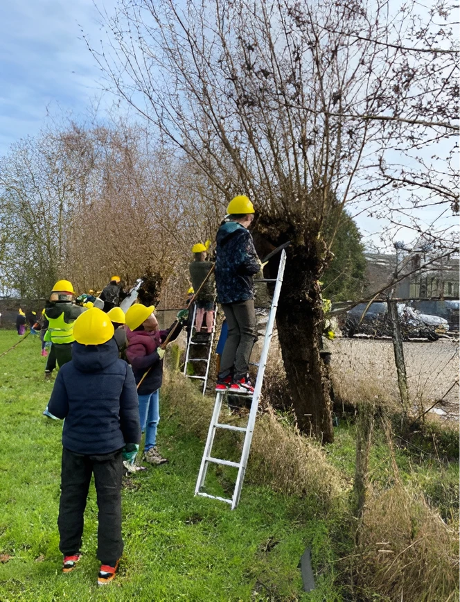 - Buitenlessen over vogels, kriebelbeestjes, wilgen knotten, eten uit de natuur, enz